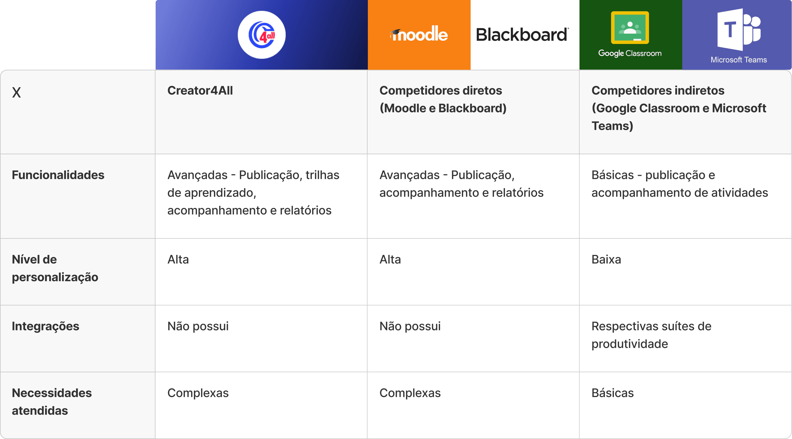 Analisar e comparar o posicionamento da Creator4All no cenário atual de SGAs