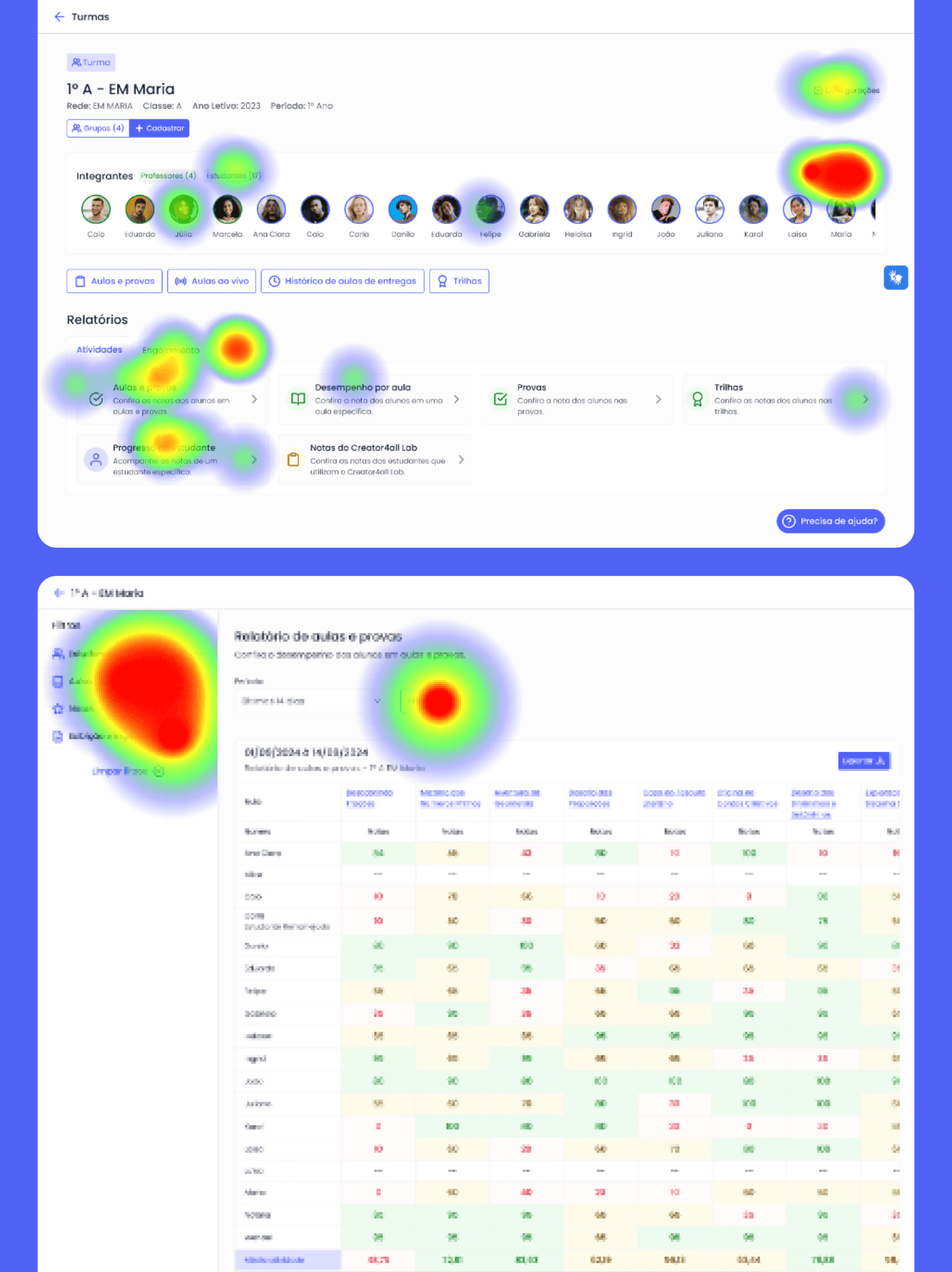 Realizei sessões de teste de usabilidade moderado e remoto através da ferramenta Maze. Cinco usuários participaram, sendo 1 professor e 4 parceiros da Creator4All.