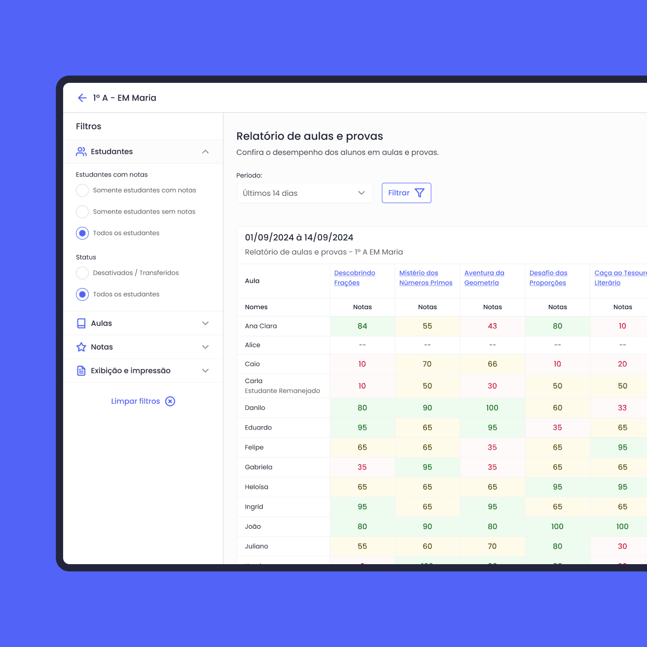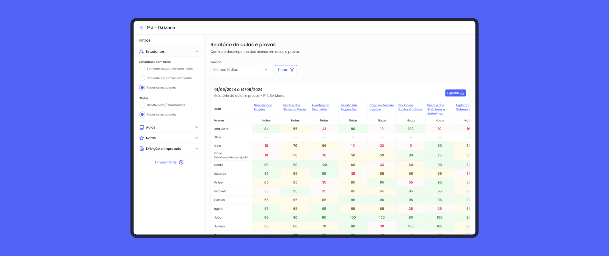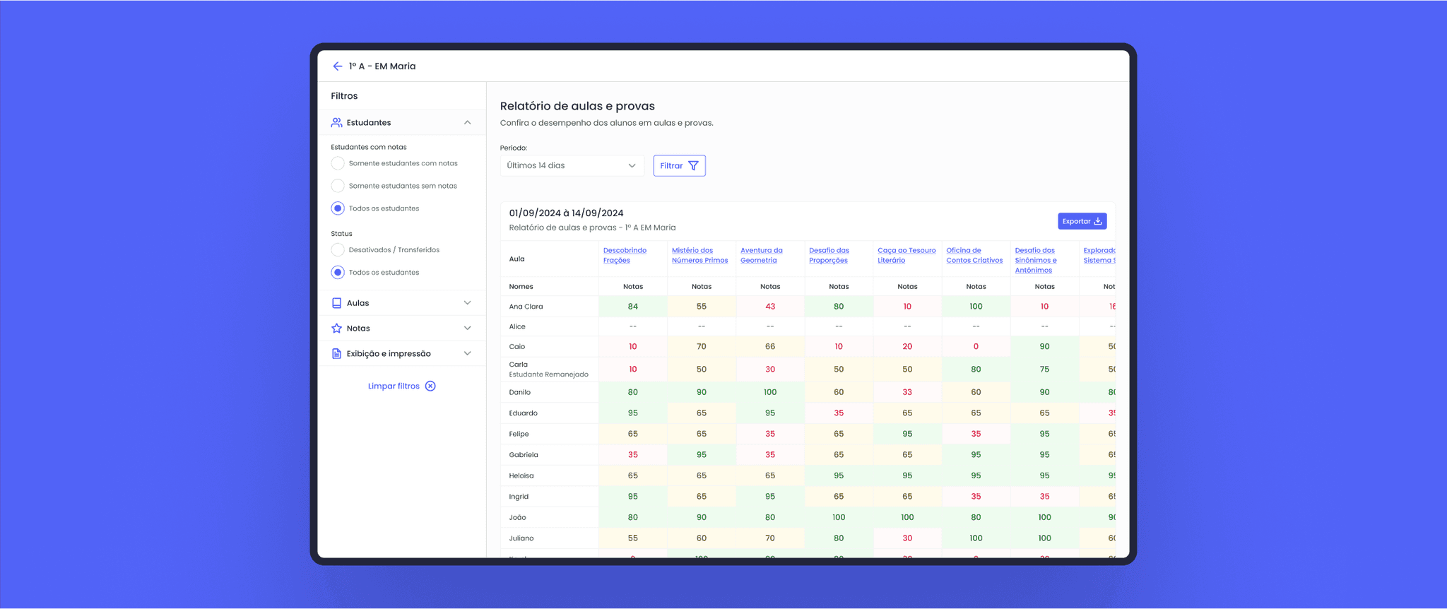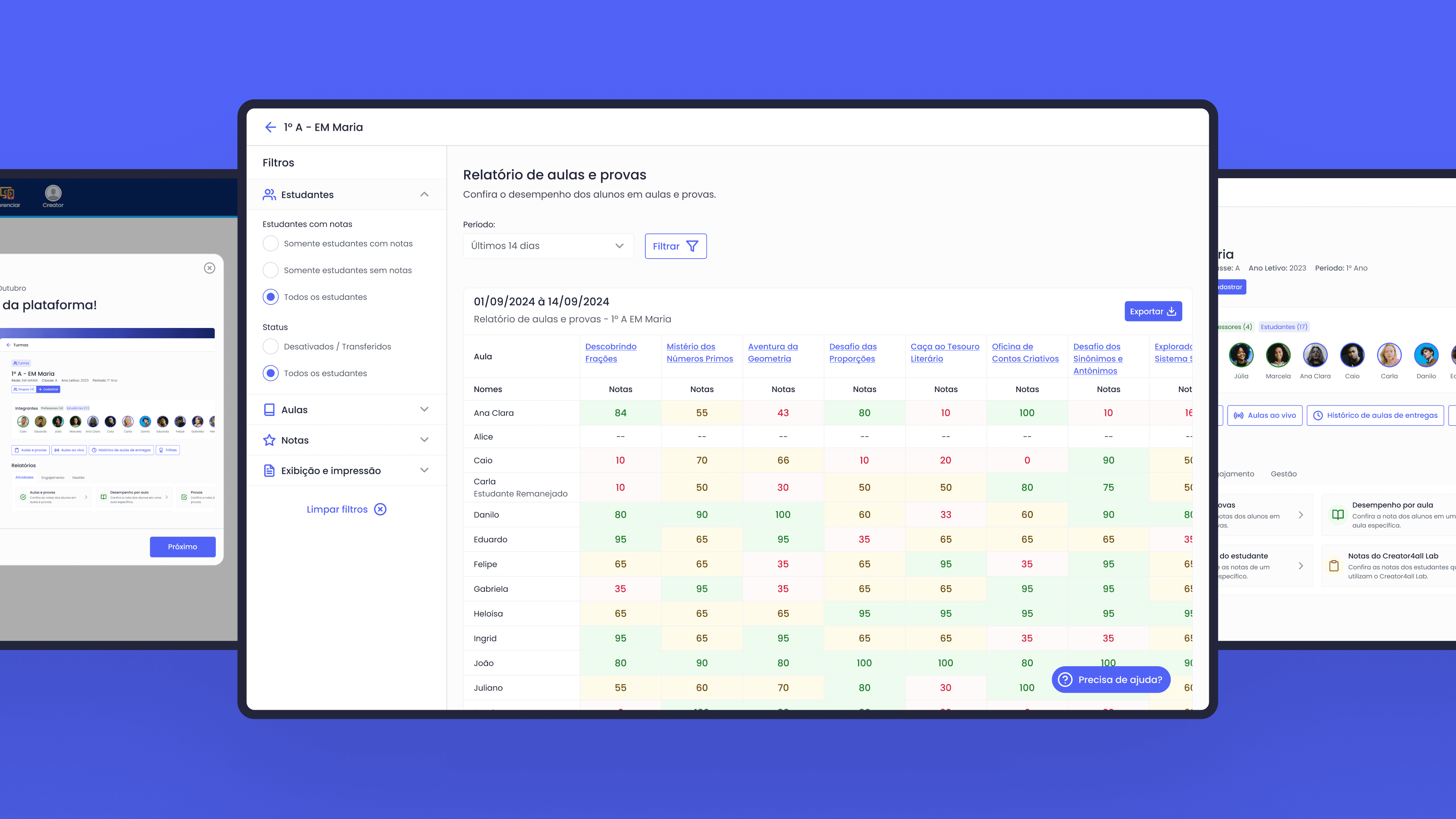 Os coordenadores pedagógicos precisam realizar capturas de telas dos relatórios para documentar os resultados.
